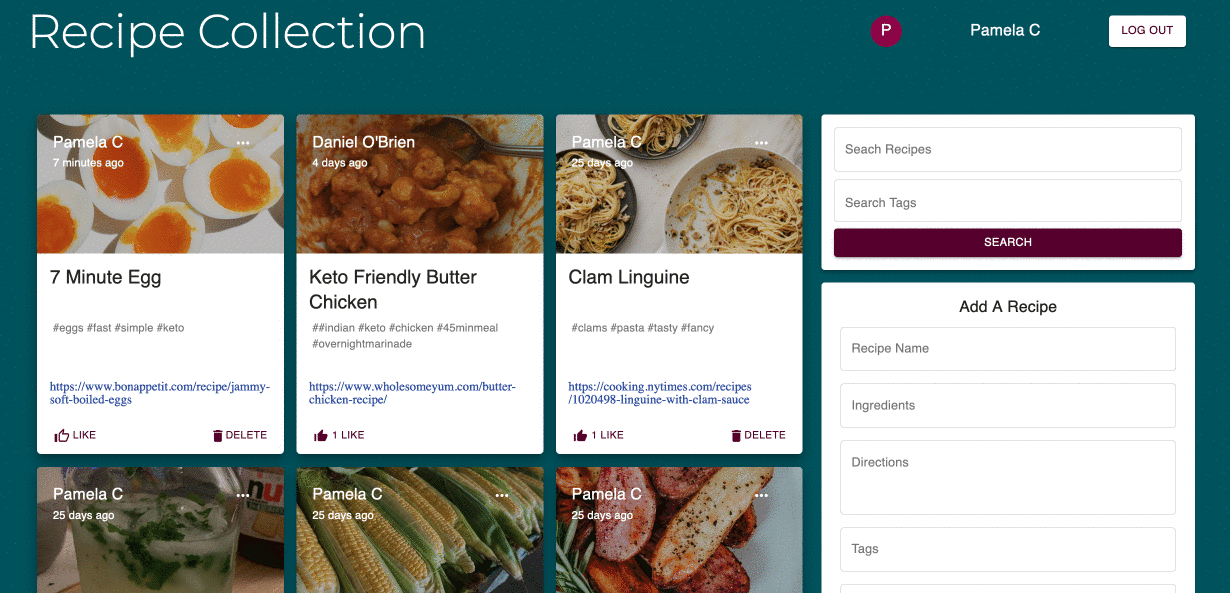 A personal project. Originally built on HTML, CSS, and JS. This version uses the MERN stack hosted on Heroku. It is a CRUD app for sharing and collecting recipes in one easy to access place. You can create a user, add, like, and delete recipes. It also has pagination and search. Currently being updated. Checkout my GitHub for more details.